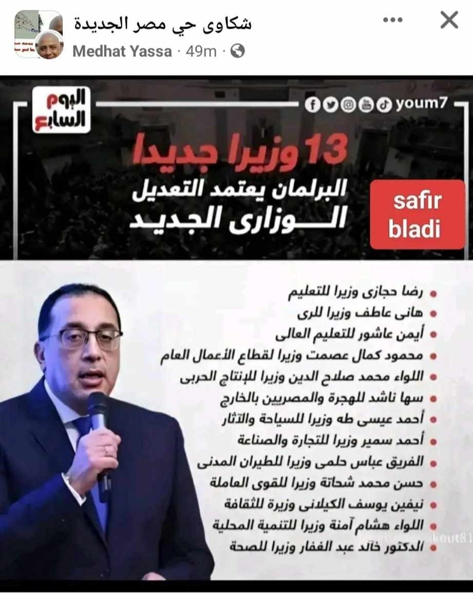 نشرت حسابات على موقع التواصل الاجتماعي الأشهر في مصر (فايسبوك) خبراً يشير إلى تشكيل الحكومة المصرية الجديدة؛ وهو زعم غير صحيح تماما. FactCheck#"