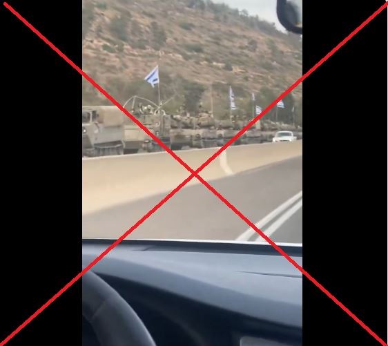 المشاهد تظهر رتلا من الدبابات التي رفعت علم اسرائيل، بينما توقفت الى جانب طريق. منذ ساعات، بدأ الفيديو الانتشار بكثافة، عبر حسابات عربية وأجنبية، ارفقته بالمزاعم الآتية (من دون تدخل): "رتل إسرائيلي نحو الشمال"، وايضا "الجيش الإسرائيلي يحشد قواته قرب الحدود اللبنانية وسط تزايد التكهنات بتوغل بري وشيك في جنوب لبنان".