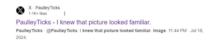 يشار الى ان الصورة حملت اسفلها توقيع paulleyTicks@ في اكس. الا ان الحساب الذي ينشر صورا وفيديوات معدلة، لا سيما لترامب، للفكاهة والسخرية، حذف صورة هتلر بعد نشرها في 18 تموز 2024، وفقا لما يبينه غوغل.