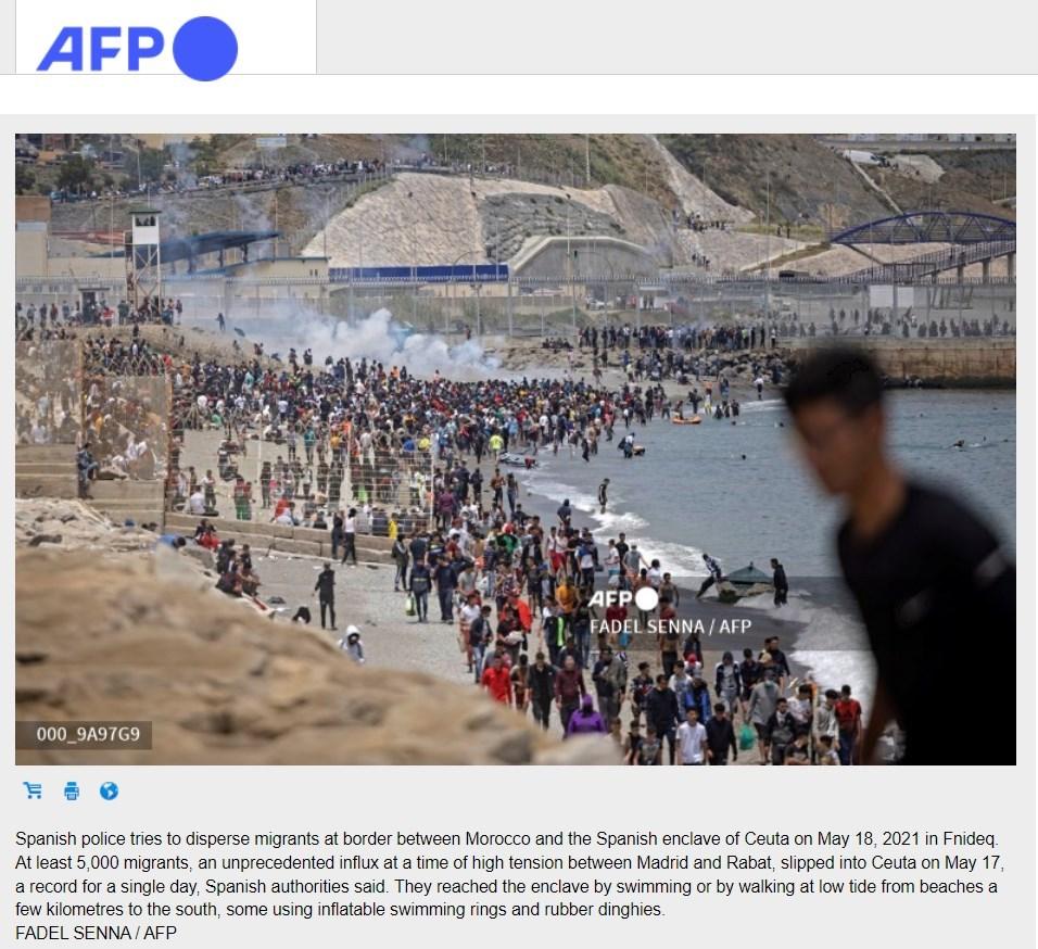 وآنداك، قالت السلطات الإسبانية إن ما لا يقل عن 5000 مهاجر تسللوا إلى سبتة ووصلوا إلى الجيب بالسباحة أو بالمشي عند انخفاض المد من الشواطئ.
