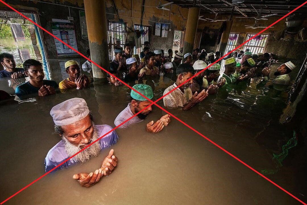 المتداول: صورة تظهر، وفقاً للمزاعم، "اشخاصاً يصلّون وسط السيول في بنغلادش خلال الفيضانات" الأخيرة في البلاد.