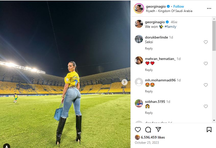 فبالبحث العكسي، نصل إلى حساب جورجينا رودريغيز على تطبيق إنستغرام، الذي نشر الصورة مع مجموعة أخرى من الصور، في عام 2023، بعنوان "We won family"، ليتبين أن الصورة تعود لتشجيع جورجينا رودريغيز لكريستيانو في مباراته ضد الدحيل القطري ضمن دوري أبطال آسيا لكرة القدم في مدرجات ملعب الأول بارك.