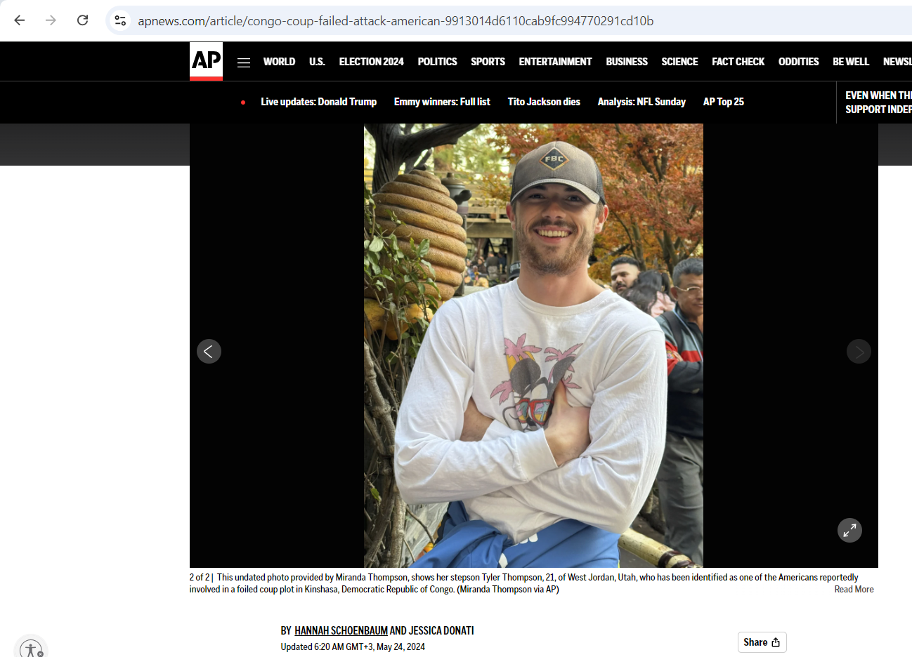 أولا، ما نعرفه عن الفيديو المتناقل هو انه انتشر في مواقع التواصل الاجتماعي في 19 ايار 2024، بينما نشرته مواقع اخبارية اميركية واجنبية بعنوان: رجل أميركي شوهد وهو يتوسل من أجل حياته بعد "انقلاب الكونغو الفاشل" في أول رحلة له إلى الخارج، وايصا "ثلاثة أميركيين بين 50 معتقلا بعد محاولة الانقلاب الفاشلة في الكونغو الديموقراطية".