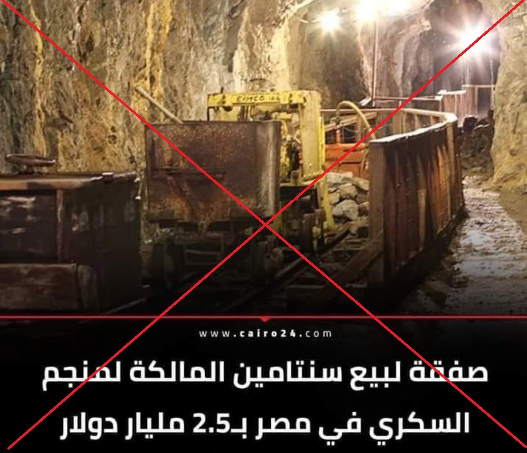 فقد نشرت حسابات على موقع "فايسبوك" خبرا يقول (من دون تدخل): "صفقة لبيع سنتامين المالكة لمنجم السكري في مصر بـ 2.5 مليار دولار".