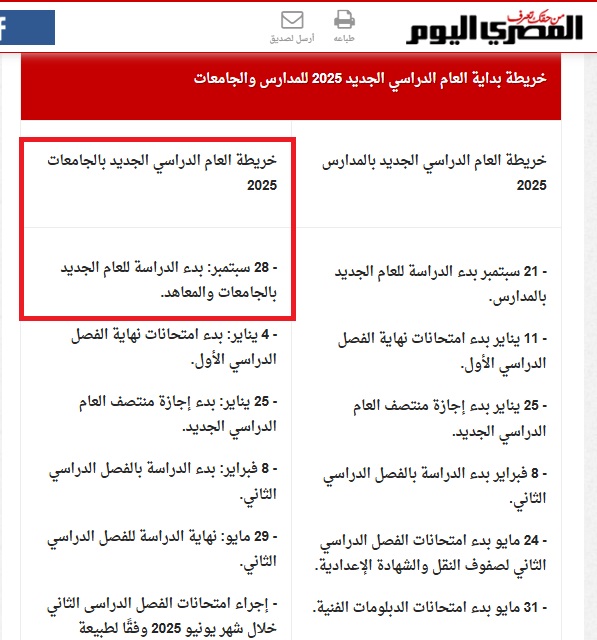 فقد نشرت مواقع إخبارية مصرية (حكومية ومستقلة) خريطة العام الدراسي الجديد في مصر، حيث تبدأ الدراسة الجامعية بتاريخ 28 أيلول (سبتمبر)، أي بعد نشر هذا الفيديو المتداول بيومين.