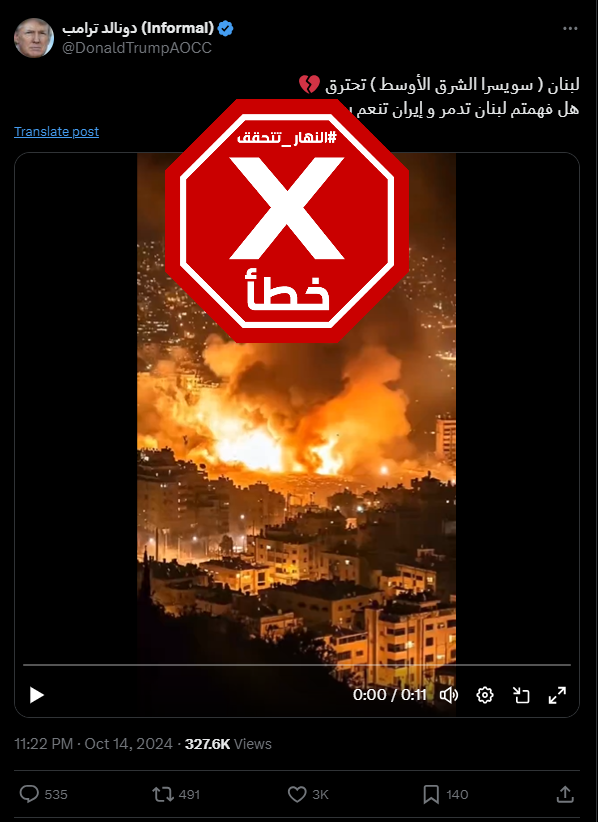 مشاهد لبنان يحترق من جراء الغارات الإسرائيليّة غير حقيقيّة FactCheck#