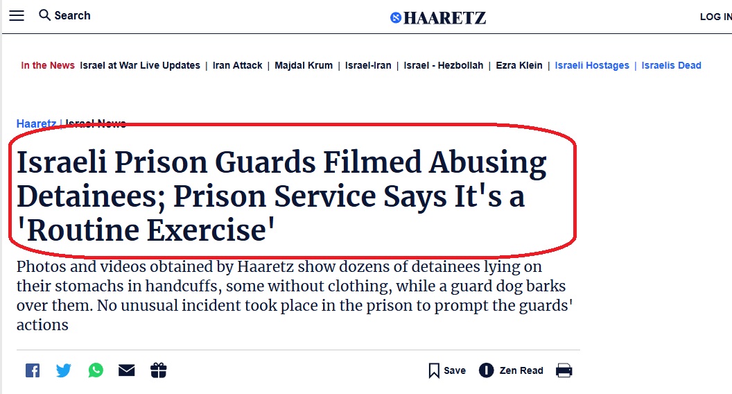 وبحسب تقرير نشره موقع Arab News في نسخته الإنكليزية، بتاريخ 8 أيلول (سبتمبر) الماضي، التقط حراس سجون إسرائيليون صورا ومقاطع فيديو لإساءة معاملتهم للمعتقلين الفلسطينيين، حسبما ذكرت صحيفة "هآرتس" الإسرائيلية السبت 7 ايلول 2024.