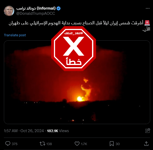 هذه الصورة لا علاقة لها بالهجوم الإسرائيلي على إيران السبت FactCheck#