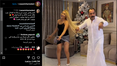 1- الفيديو نشر بتاريخ 30 تشرين الاول/ أكتوبر 2021 على منصة انستغرام في حساب الراقصة الإيرانية نازانين حمداني، الفتاة التي تظهر في الفيديو، وكانت ترقص مع والدها، على ما ذكرت أسفل الفيديو.