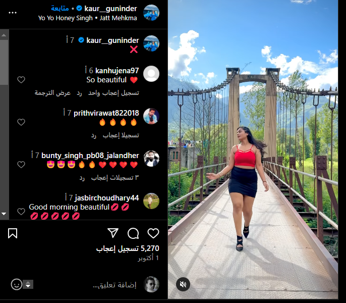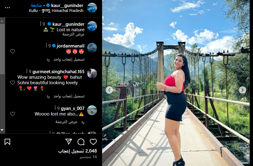 الصورة المتناقلة تعود لصانعة محتوى هندية تدعى كور غونيندر kaur guninder، وتنشط على منصة انستغرام.