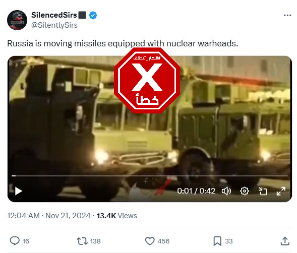 هذا الفيديو لا يظهر تحريك روسيا أخيراً صواريخ تحمل رؤوساً نووية FactCheck#