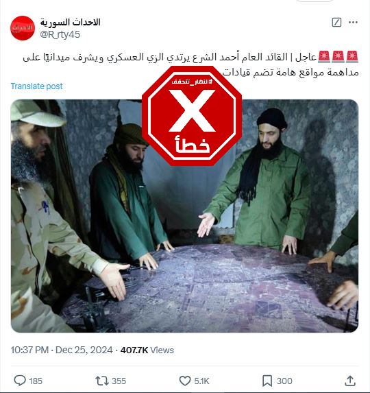 هذه الصورة لا تظهر أحمد الشرع يشرف على مداهمات في سوريا أخيراً FactCheck#