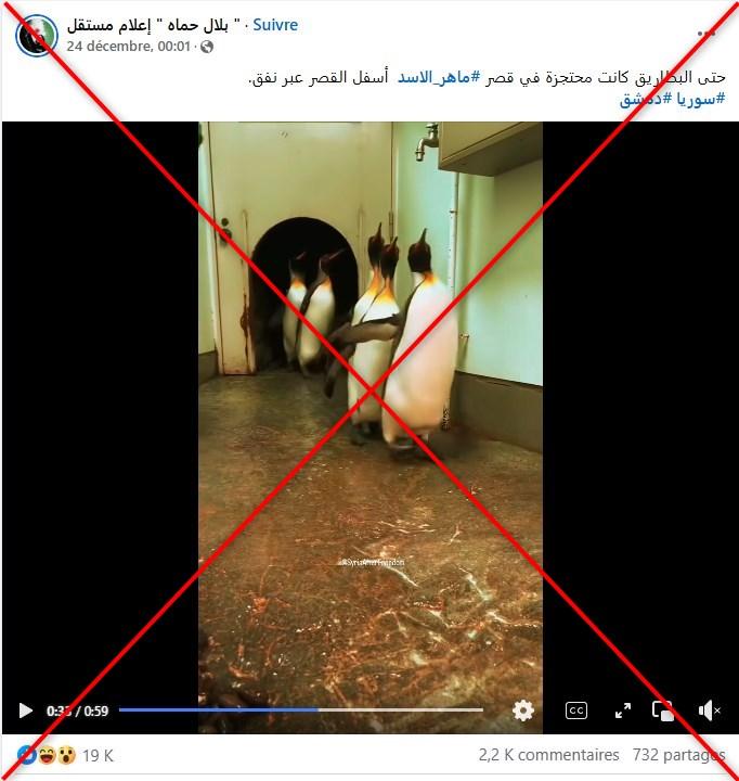 تداولت صفحات على مواقع التواصل الاجتماعي مقطع فيديو قالت إنه لبطاريق كانت محتجزة في قصر شقيق الرئيس السوري المخلوع بشار الأسد. لكن الادعاء مضلّل، ومشاهد البطاريق مأخوذة من فيديو لحديقة حيوان في اليابان.