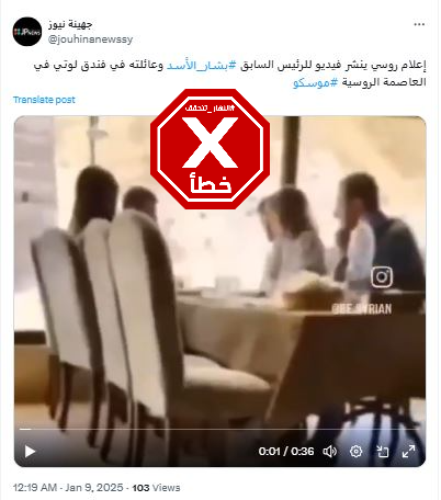 هذا الفيديو لا يظهر بشار الأسد برفقة عائلته في فندق بموسكو FactCheck#