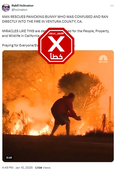 المتداول: فيديو يظهر، وفقاً للمزاعم، "لحظة إنقاذ ارنب أخيرا خلال حرائق لوس انجليس" المدمرة.