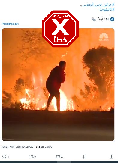 تظهر المشاهد رجلا كان يلاحق على ما يبدو انه أرنب، على مقربة من نيران مشتعلة الى جانب طريق. وبينما اختفى الحيوان الصغير لثوان في الاعشاب، أخذ الرجل يقفز في مكانه خوفا، قبل ان ينجح في استعادة الحيوان ويحمله بعيدا من خطر النار. وقد تكثف التشارك في المقطع خلال الايام الماضية عبر حسابات، بالعربية والانكليزية، ارفقته بتعليقات (من دون تدخل) مثل "انقذ أرنا، حرائق لوس أنجليس"، وايضا "رجل ينقذ أرنبا مذعورا ركض مباشرة إلى النار في مقاطعة فينتورا بكاليفورنيا".