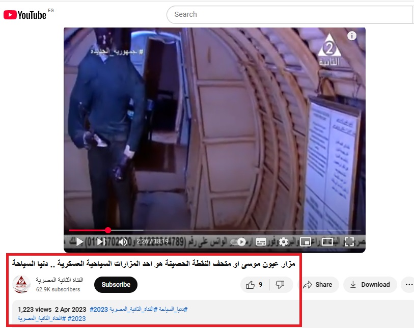 وبالبحث عن ماهية هذا المكان، الذي يبدو أنه أحد التحصينات على طول خط بارليف خلال حرب أكتوبر/ تشرين الأول 1973، وليس لنفق تابع للجيش المصري، اتضح أنه يعود إلى "مزار عيون موسى" أو "متحف النقطة الحصينة"، وهو أحد المزارات السياحية العسكرية. ويظهر بوضوح في أحد البرامج السياحية للقناة الثانية بالتلفزيون المصري (حكومي) على موقع يوتيوب، بتاريخ 2 نيسان (أبريل) 2023.