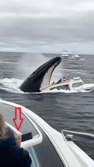 11 ثانية "تحبس الأنفاس"، بوصف مستخدمين. المقطع الذي حاز خلال الساعات الماضية ملايين عدة من المشاهدات، يظهر حوتا يفتح فمه الكبير ليبتلع قاربا في عرض البحر، بالقرب من زوارق أخرى، بينما يُسمع صراخ في الخلفية. وقد ارفقته حسابات، عربية واجنبية، بالمزاعم الآتية (من دون تدخل): "حوت يبتلع قاربا".