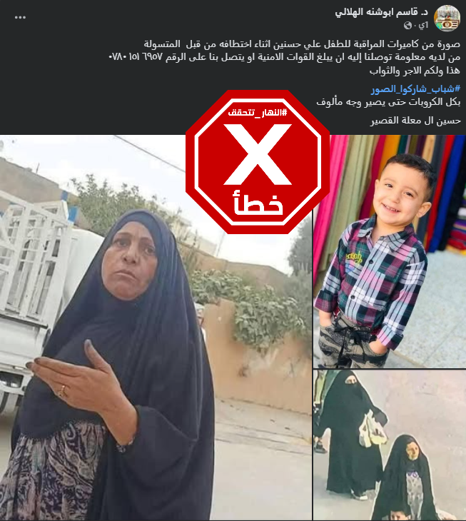 تتداول العديد من الصفحات على مواقع التواصل الاجتماعي خبراً عن "اختطاف طفل يدعى علي حسنين على يد متسولة" أخيراً. إلا أن هذا الادعاء خاطئ. هذه الحادثة قديمة، اذ تعود إلى عام 2022، وتم العثور على الطفل آنذاك. #FactCheck