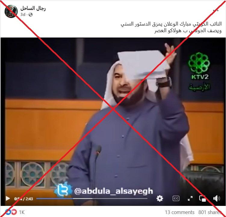 هذا الفيديو لنائب كويتي يمزّق الدستور السوري اعتراضاً على أداء سلطات دمشق ليس جديداً FactCheck#