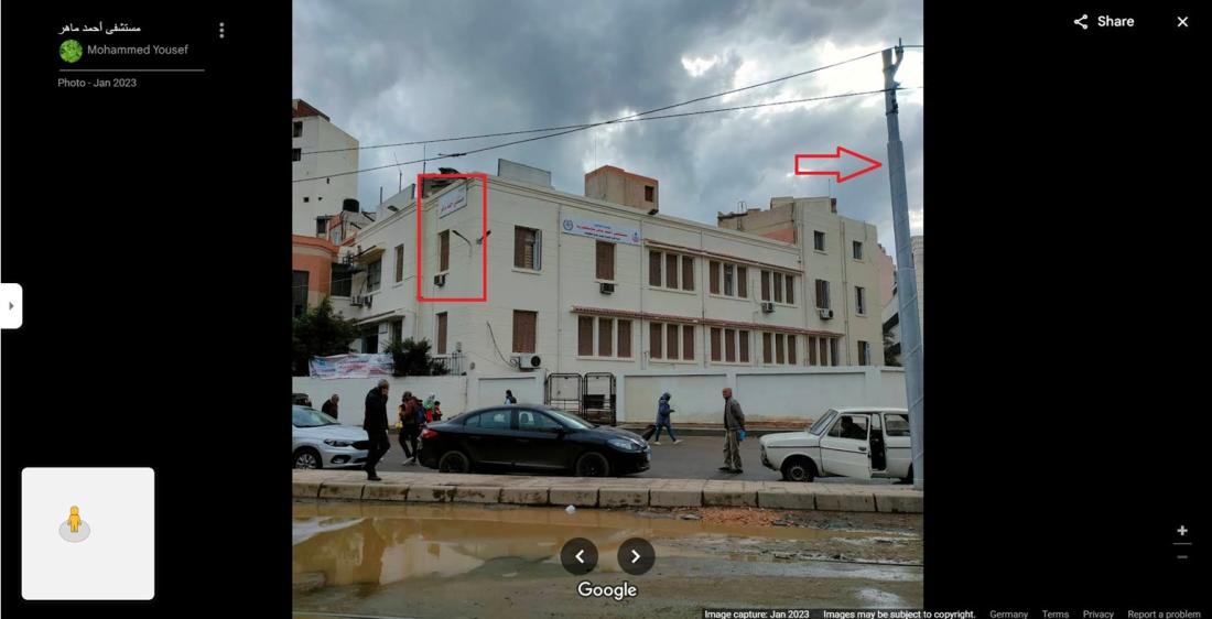 وتمكّن صحافيو خدمة تقصّي صحّة الأخبار في وكالة فرانس برس من تحديد المكان الظاهر في أول الفيديو، من أمام مستشفى أحمد ماهر في ميدان الشهداء، على خرائط غوغل.