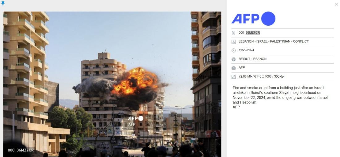وقد وزّعت وكالة فرانس برس صوراً لهذه الغارة في 22 تشرين الثاني/نوفمبر 2024.