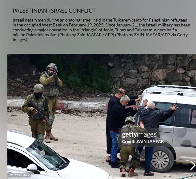 الحقيقة: الصورة التي نشرتها وكالة Getty Images في 19 شباط 2025، تظهر جنودا إسرائيليين يعتقلون رجالاً خلال مداهمة إسرائيلية في مخيم طولكرم بالضفة الغربية المحتلة، وفقاً لما ذكرت الوكالة. FactCheck#