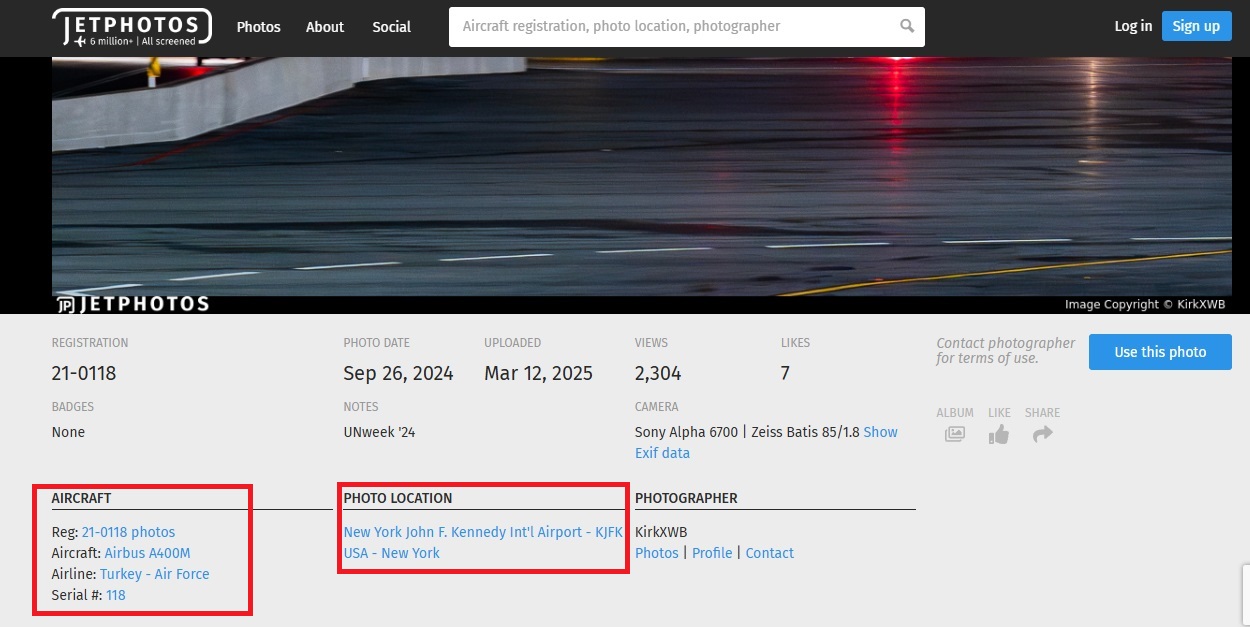 وبحسب الشرح المرفق بالصورة، فقد تم التقاطها في مطار جون إف كينيدي الدولي بنيويورك في الولايات المتحدة الأميركية، وهي لطائرة شحن عسكرية تابعة للقوات الجوية التركية من طراز إيرباص A400M.