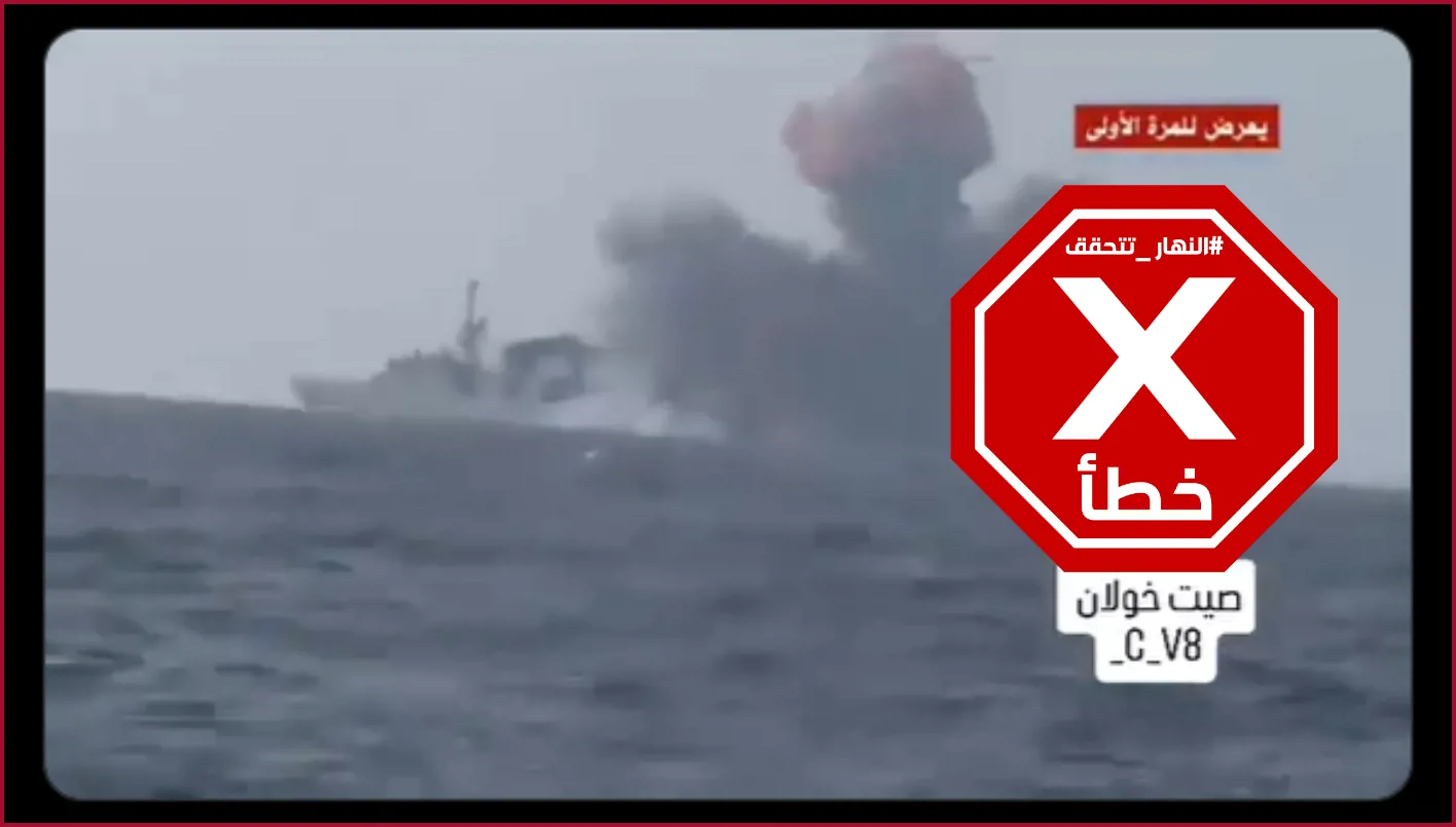 الحقيقة: الفيديو قديم، اذ يعود الى 30 كانون الثاني 2017. ويظهر هجوماً نفذه الحوثيون ضد سفينة حربية سعودية قبالة السواحل الغربية لليمن. FactCheck#