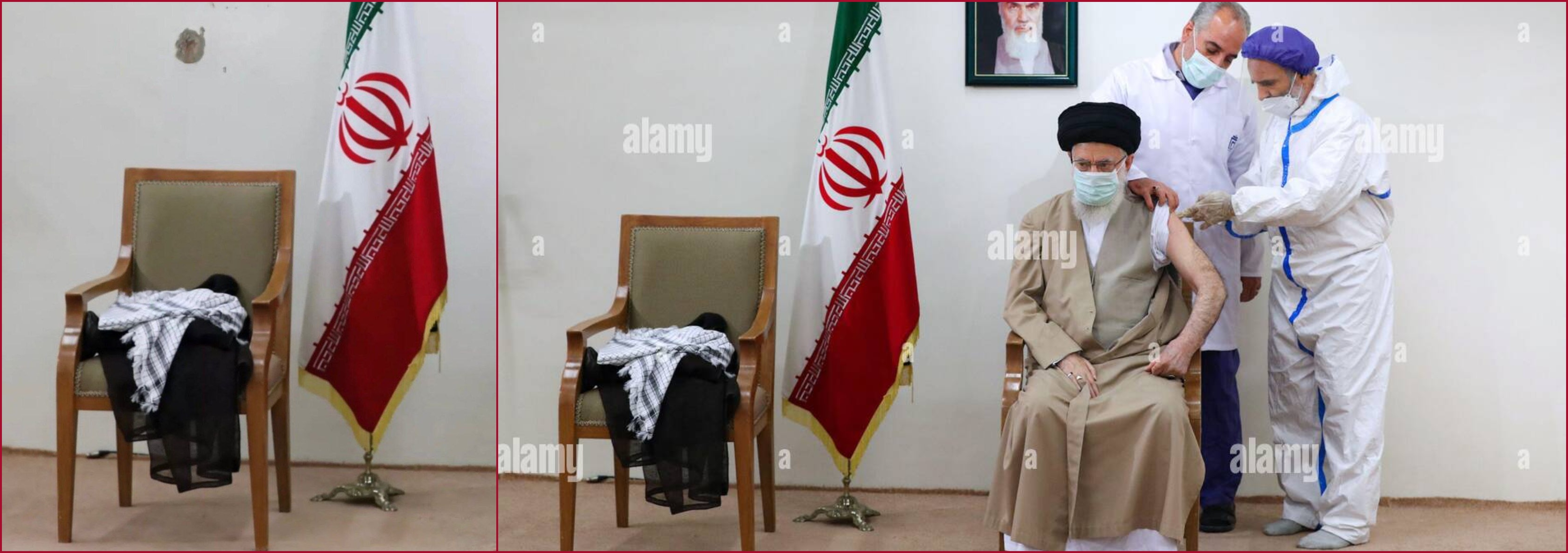 ونشر حساب خامنئي على تويتر فيديو له يظهره جالسا، تحت صورة لآية الله الخميني، وهو "يتلقى الجرعة الأولى من لقاح كوفيد الايراني الذي طوره علماء ايرانيون شبان، وفقا لما ذكرت وكالة "فرانس برس".
