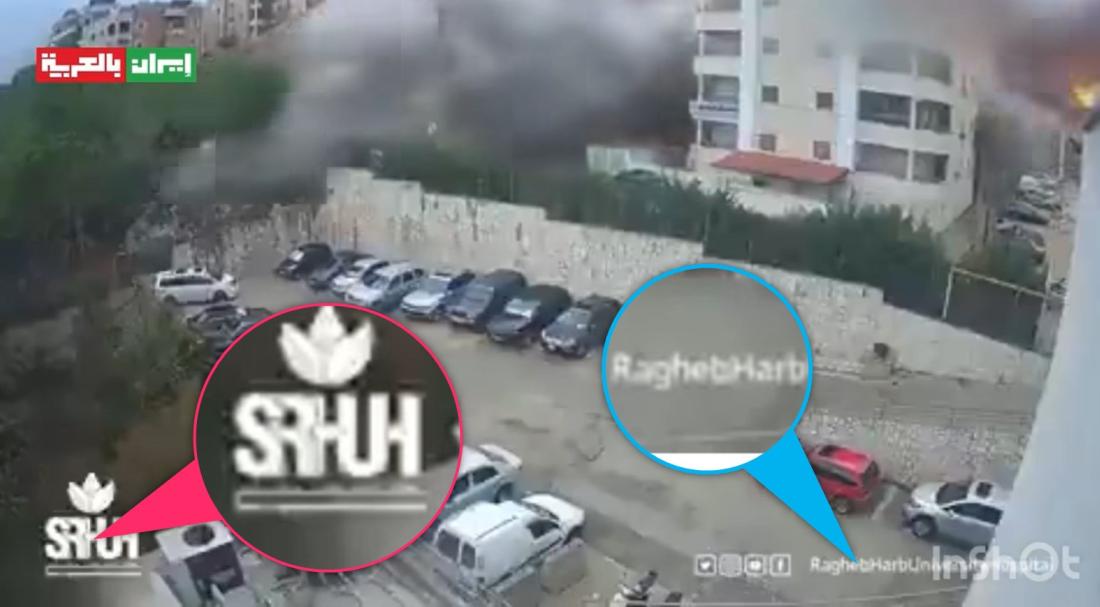 كذلك، تظهر في أسفل الفيديو علامة SRUH، التي تشير إلى "مستشفى الشيخ راغب حرب الجامعي" الواقع في جنوب لبنان.