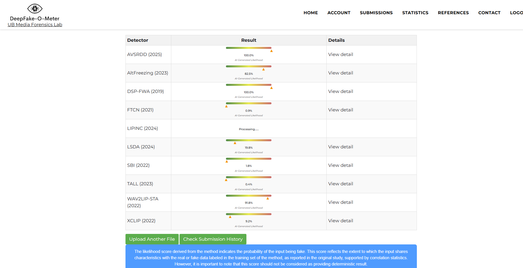 فحص الفيديو بواسطة برنامج DeepFake-O-Meter لكشف الفيديوات الزائفة، والذي تؤمنه جامعة بافيلو، يعطي نتيجة واضحة انه تزييف عميق، بنسبة 100%.