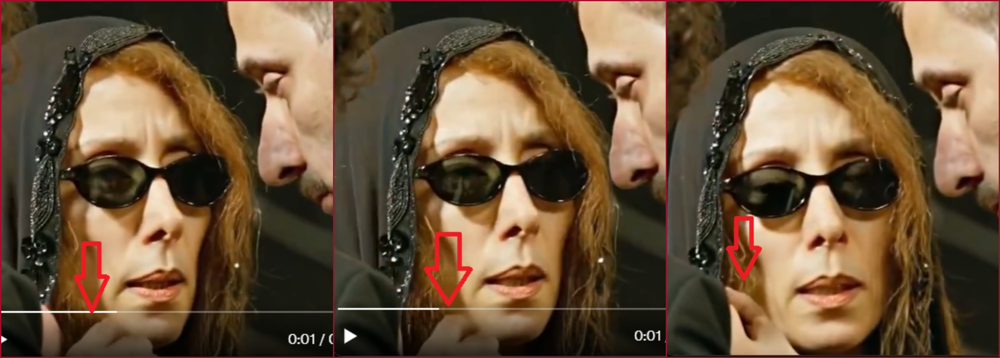 ركّزوا على اليد التي تظهر في الاسفل الى اليسار، في أول الفيديو. سترون كيف سيتغيّر اتجاهها بسرعة وفي شكل غير منطقي، لتتحوّل يداً تلمس خد زياد (الصورة 1).