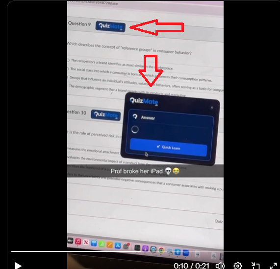 في الواقع، لفتنا تركيز الكاميرا، في التوقيت 0.07 في الفيديو، على اسم محدّد ظهر على شاشة الكمبيوتر أمام طالبة، ونقرأ QuizMate.