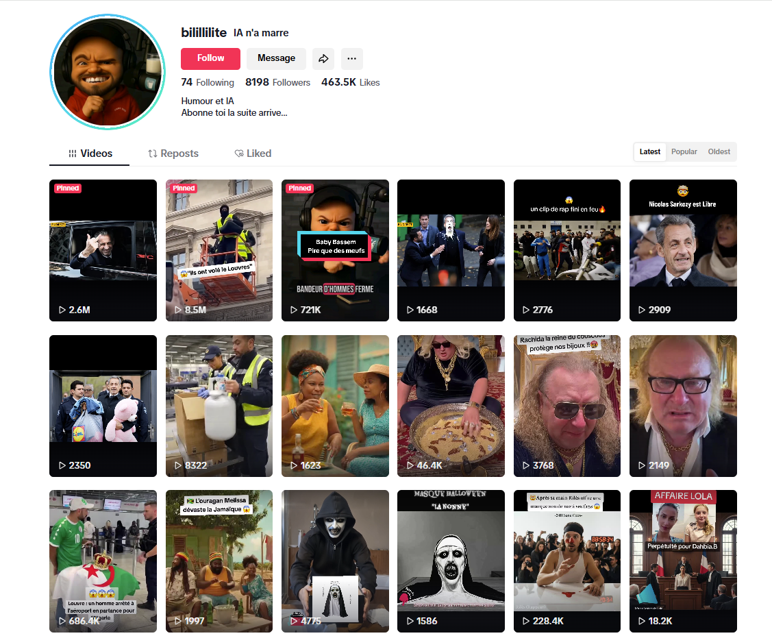 فالبحث عن المقطع يوصلنا اليه منشوراً في حساب bilillilite/ IA n'a marre@ في تيك توك، في 10 تشرين الثاني 2025، مع ملاحظة: منشئ الفيديو صنّفه انه من انتاج الذكاء الاصطناعي، وذلك بما يدل على ماهيته.