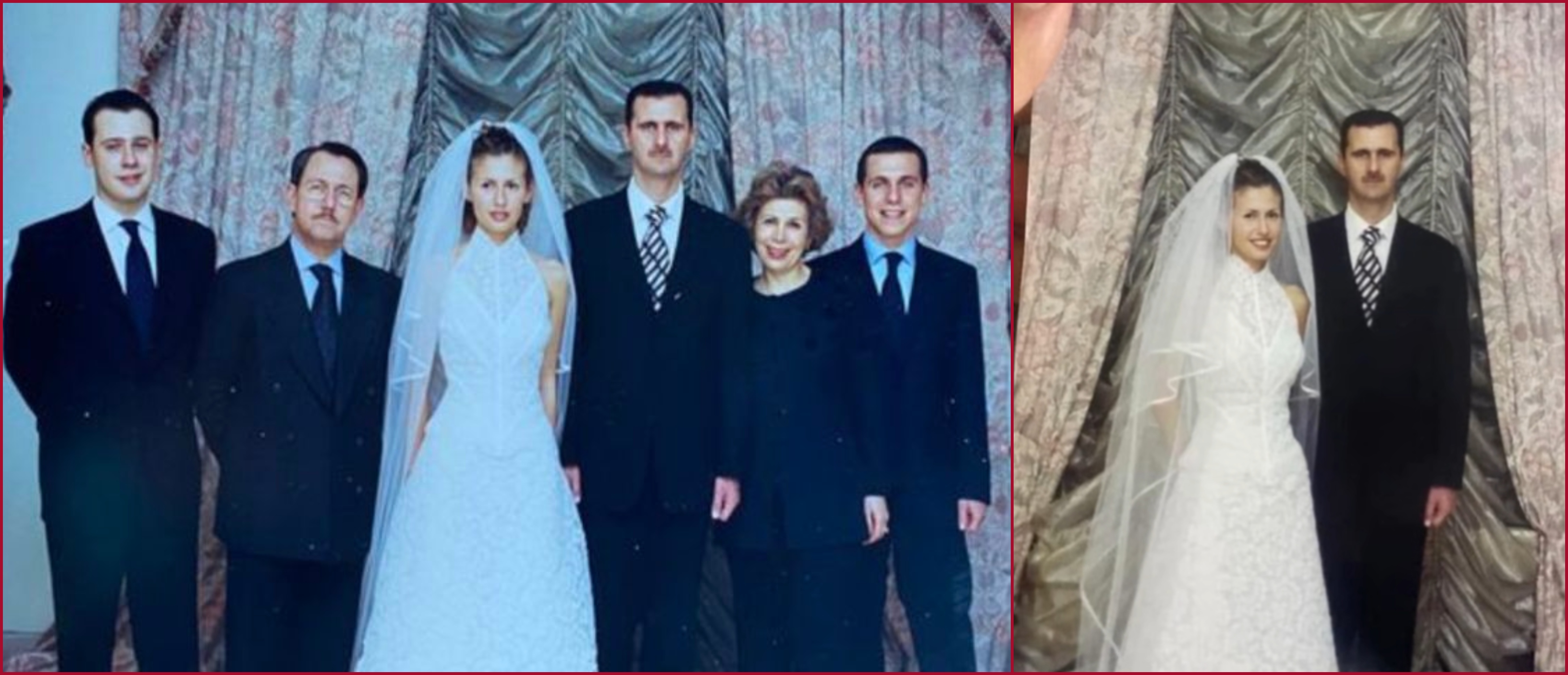 فالبحث العكسي يوصلنا الى الصورة الاصلية منشورة في حسابات في 15 كانون الاول 2024، أي بعد نحو أسبوع على سقوط نظام بشار الاسد في سوريا، في 8 منه. ويظهر فيها بشار الاسد، الى جانب زوجته أسماء الأخرس بثوب العرس.