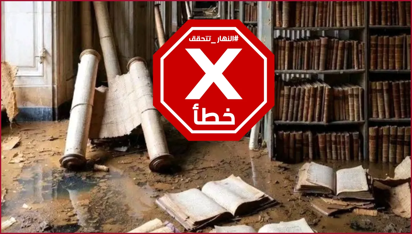 وبالبحث في الخبر الحقيقي المنشور في 26 تشرين الثاني/نوفمبر الماضي، يتضح أن الضرر أصاب كتبا ومجلدات مختصة بالآثار المصرية (علم المصريات)، وليس مخطوطات تاريخية أثرية، كما يزعم الخبر المتداول.
