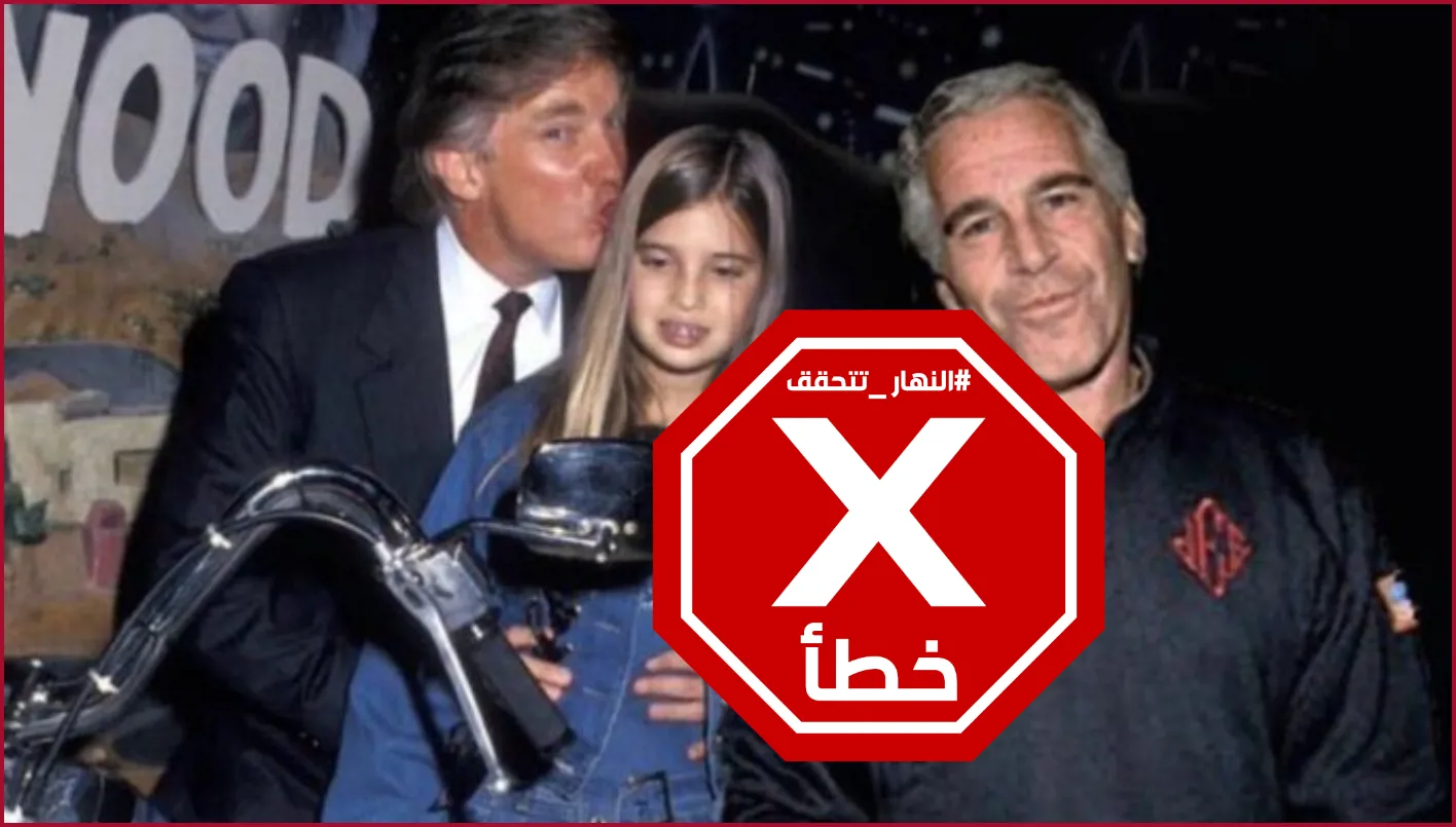 الحقيقة: الصورة زائفة، مركبة من صورتين اصليتين لا علاقة لهما ببعضهما البعض: الاولى تظهر ترامب مع ابنته إيفانكا خلال افتتاح مقهى هارلي ديفيدسون في مدينة نيويورك في 19 تشرين الاول 1993. والاخرى لإبستين خلال حضوره احتفال إطلاق مجلة "رادار" في فندق كيو تي، في 18 ايار 2005. FactCheck#