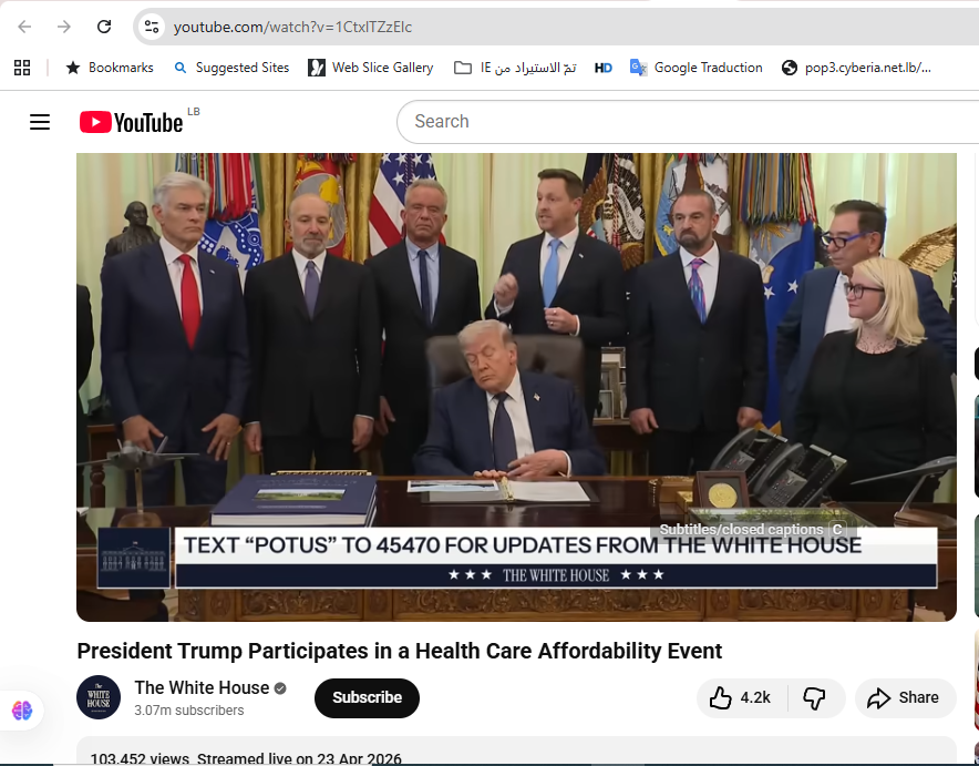 لكن هذه المشاهد معدّلة، زائفة. والدليل العثور على المشاهد الاصلية لترامب منشورة ضمن فيديو أطول في حساب البيت الابيض في يوتيوب، في 23 نيسان 2026، بعنوان: ترامب يشارك في فعالية حول القدرة على تحمل تكاليف الرعاية الصحية.