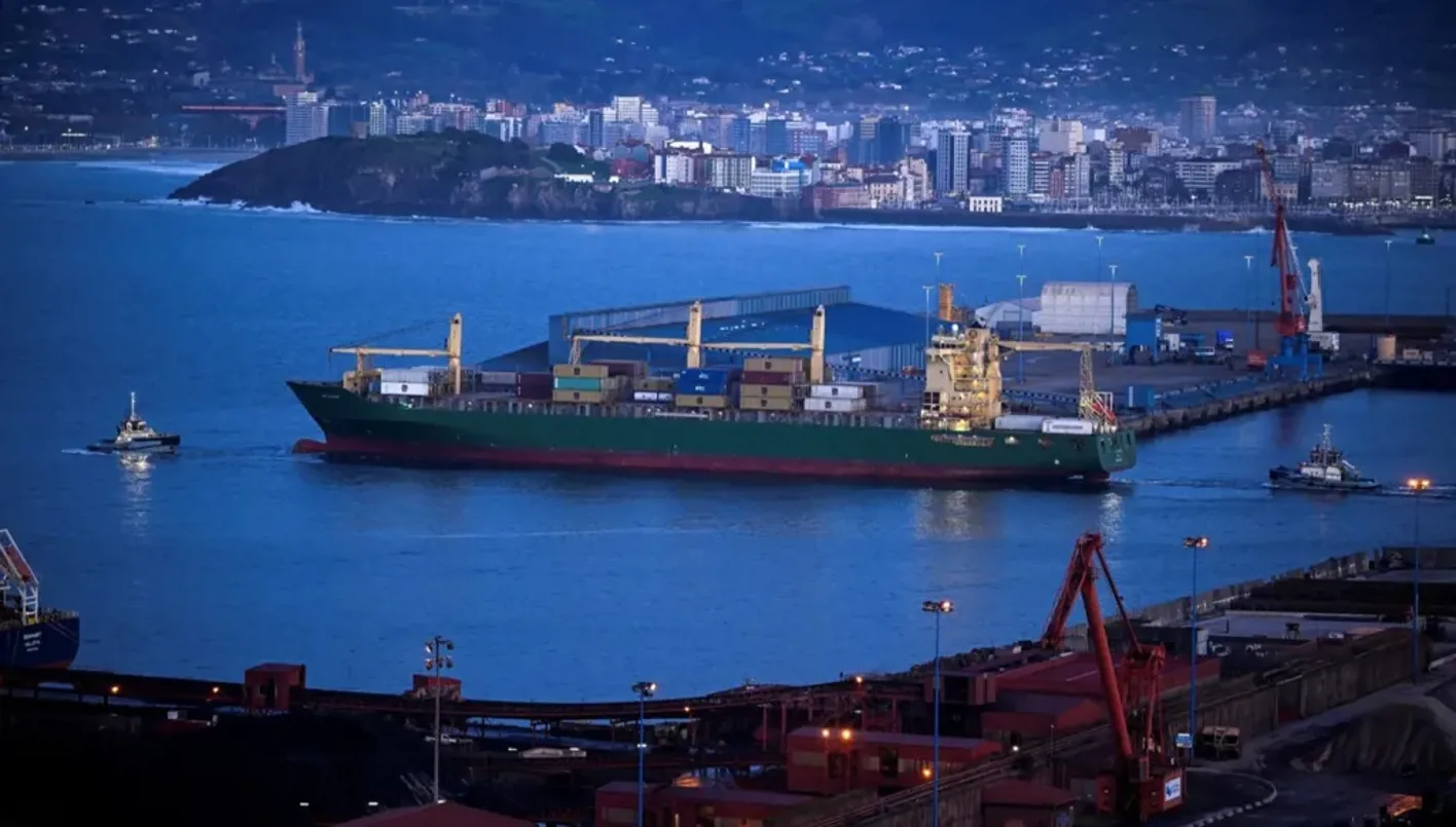 A photo taken on March 17, 2026, shows tugboats assisting the container ship MSC Salina III, sailing under the Portuguese flag, as it departs the port of the Spanish city of Gijón. (AFP)