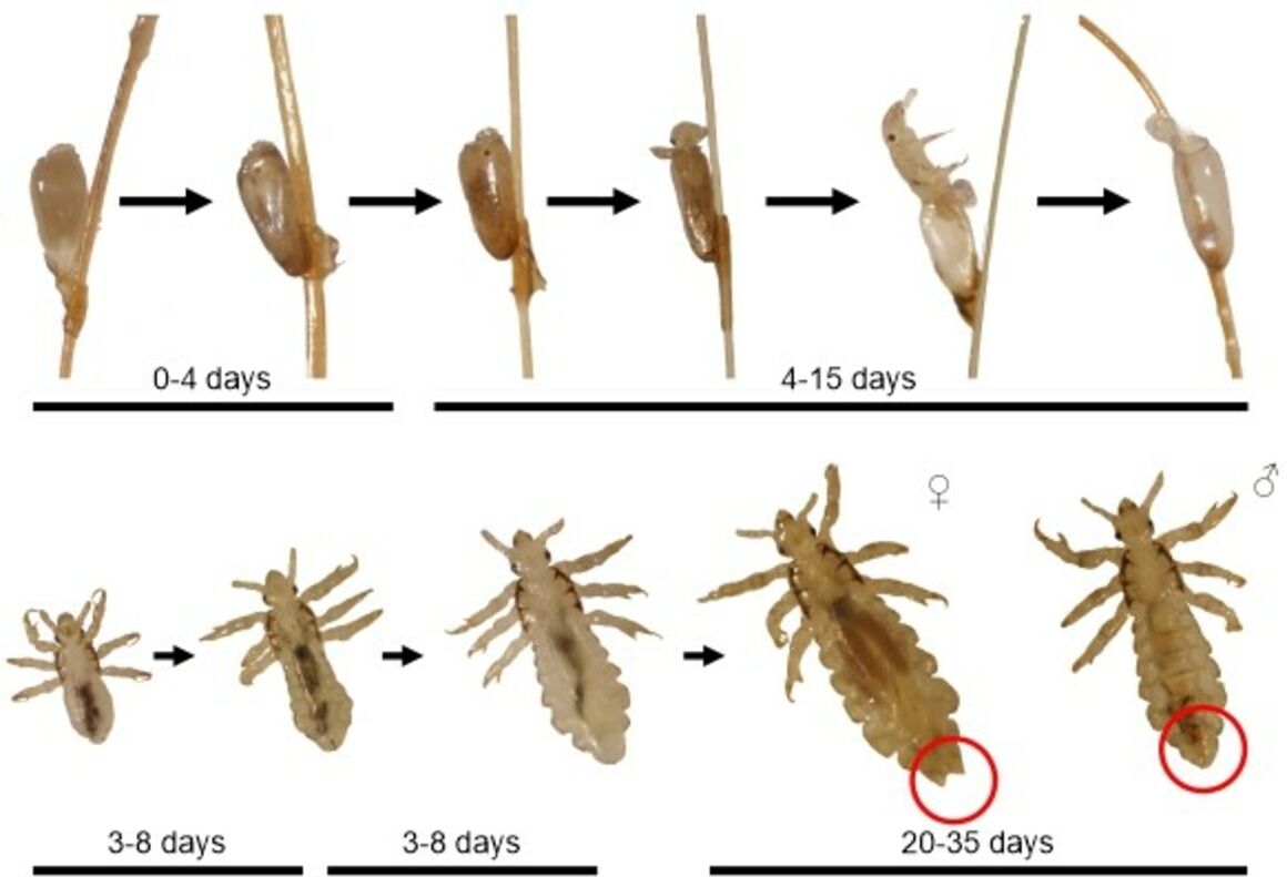 القمل معروف بقدرته المدهشة على التكاثر بسرعة كبيرة في فروة الرأس. تبدأ دورة حياته ببيضة صغيرة تُعرف بـ"السيبان"، تفقس خلال أسبوع تقريباً، لينبثق عنها قمل صغير (حورية) يبدأ في النمو والتغذية على الدم فوراً. وفي غضون أسبوعين، يصبح القمل بالغاً، ومستعداً لبدء دورة تكاثر جديدة، حيث تضع الأنثى البالغة حوالى 6 إلى 10 بيضات يومياً.