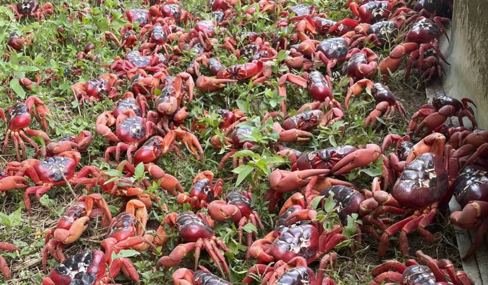بدأت عشرات الملايين من السرطانات الحمراء هجرتها السنوية عبر جزيرة كريسماس، متّجهة إلى المحيط في مشهد طبيعي مذهل. ويُشارك السكان البشريون القليلون في الجزيرة بنشاط، باستخدام نافخات الأوراق وأمشاط الحدائق لمساعدة القشريات.