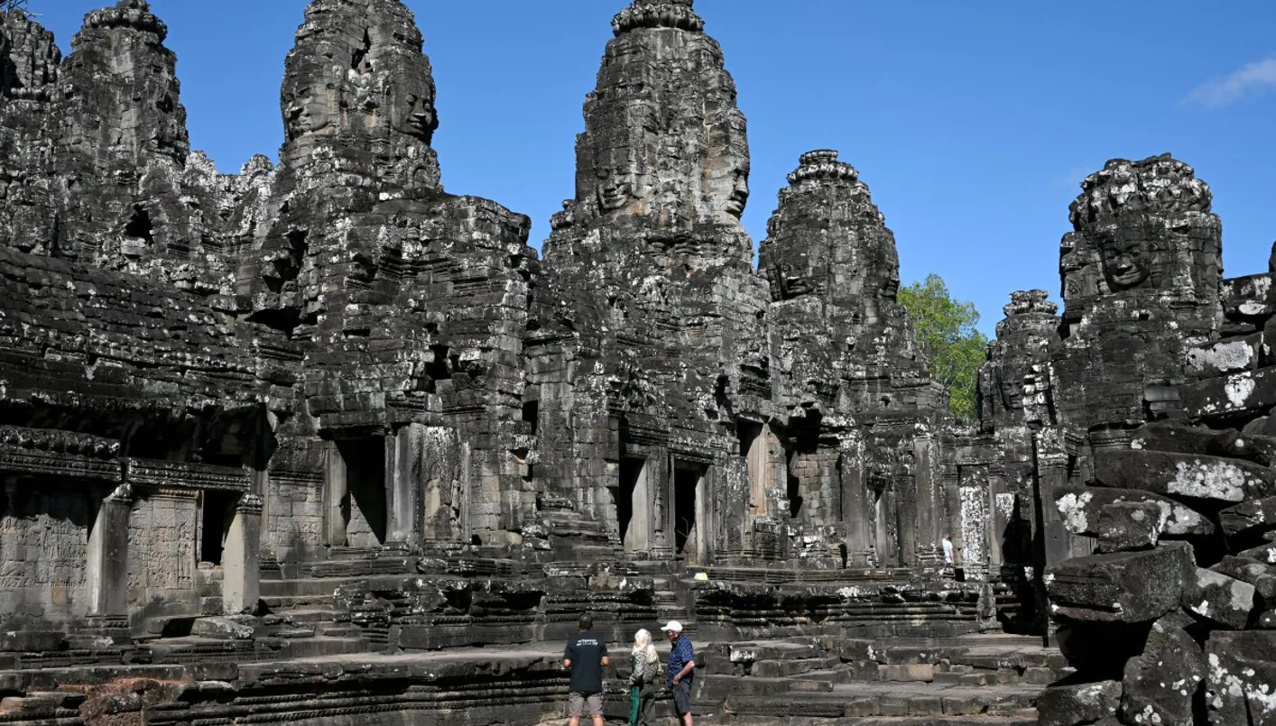 تُظهر هذه الصورة، التي التُقطت في 18 كانون الأول/ديسمبر 2025، سياحًا يزورون معبد بايون في مقاطعة سيم ريب. (أ ف ب)