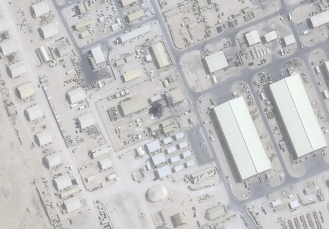 وتُظهر صور الأقمار الاصطناعية من Planet Labs PBC القبة الجيوديسية المرئية في قاعدة العديد الجوية صباح يوم 23 حزيران/ يونيو، قبل ساعات فقط من الهجوم.