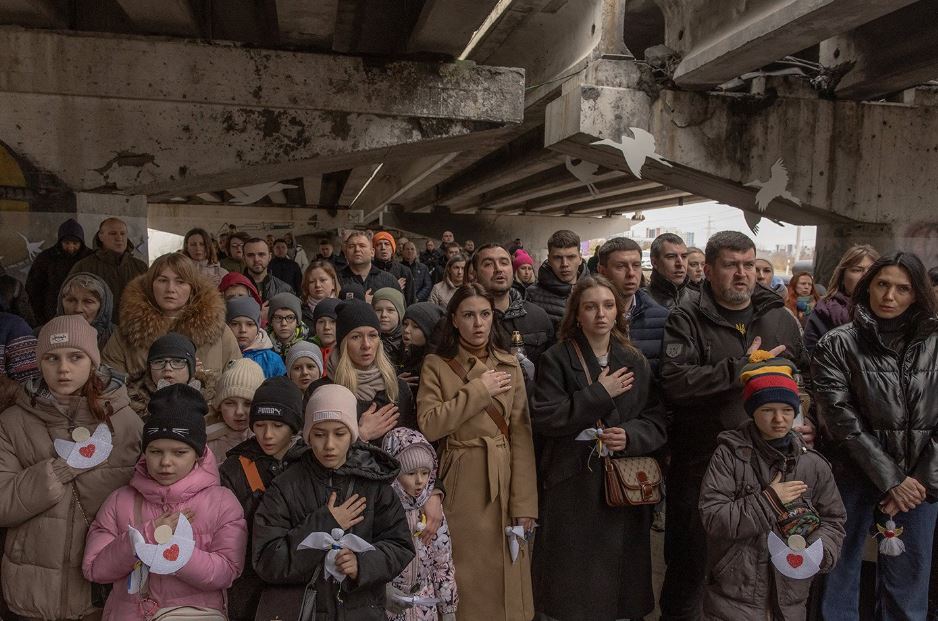 في مدينة إيربين، وهي مدينة تقع في شمال أوكرانيا، أحيا السكان المحليون الذكرى السنوية الثانية للغزو الروسي الشامل في 24 شباط، وقال عمدة إيربين إنّ ما يصل إلى 300 مدني قتلوا بنيران القوات الروسية التي احتلت المدينة خلال الأسبوع الأول من الحرب.