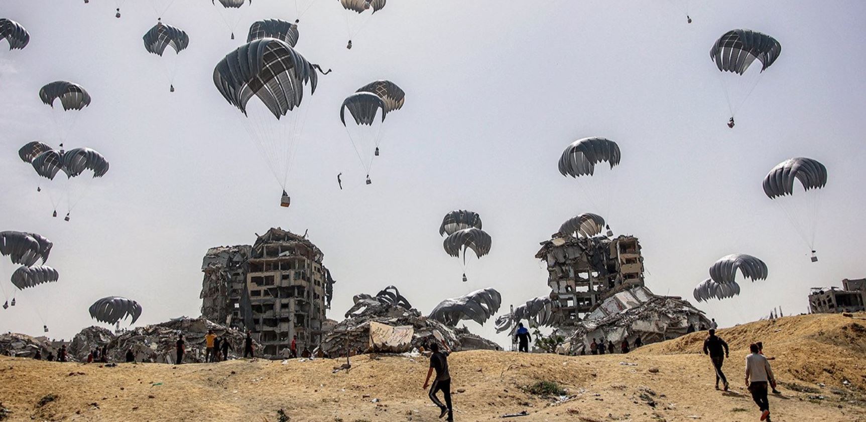 تمّ إلقاء حزم المساعدات الإنسانية بالمظلات إلى شمال غزة من قبل عدد من الدول، في أعقاب تقرير تدعمه الأمم المتحدة أشار إلى أن إسرائيل تحجب الغذاء عن سكان غزة خلال الصراع الدائر مع "حماس". وقد نفت إسرائيل هذا الادعاء.