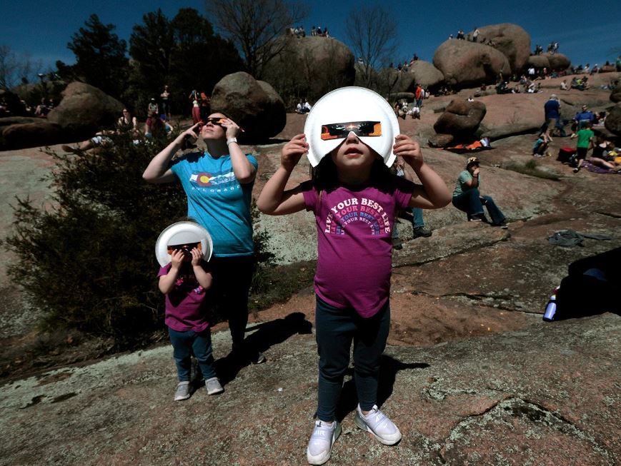 في 8 نيسان (أبريل) أظلمت أجزاء من العالم خلال الكسوف الكلي للشمس. ارتدت هذه العائلة الأميركية واقيًا للعينين للنظر إلى الشمس.