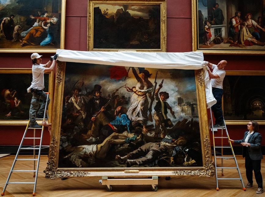 أعيدت تحفة أوجين ديلاكروا "الحرية تقود الشعب" إلى متحف اللوفر في 30 نيسان (أبريل) بعد ترميمها. تصوّر اللوحة ثورة تموز (يوليو) عام 1830، التي أطاحت بالملك شارل العاشر.