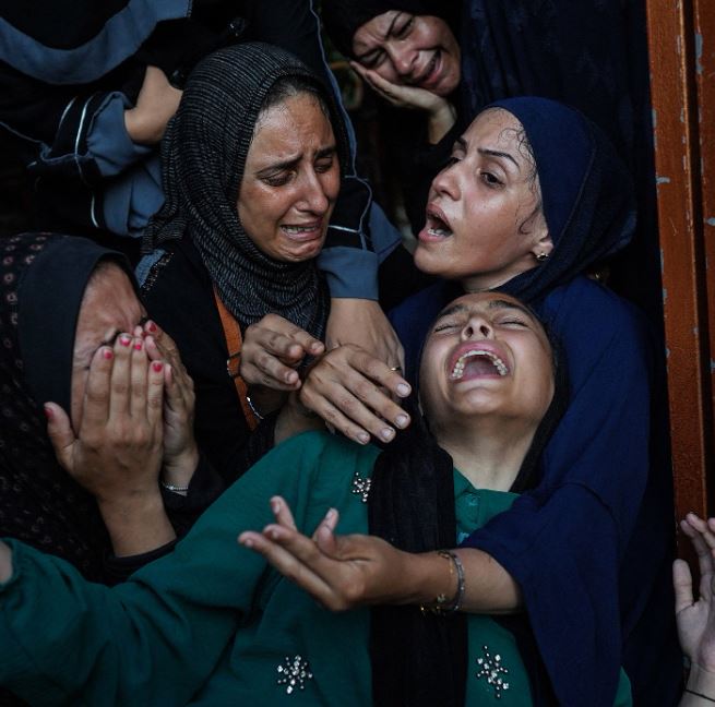 تمّ الإبلاغ عن مقتل أكثر من 70 فلسطينيّاً خلال الهجوم الإسرائيلي على مدينة خان يونس جنوب قطاع غزة في 22 تموز. هؤلاء النساء ينعين أفراد من عائلة أبو طه.