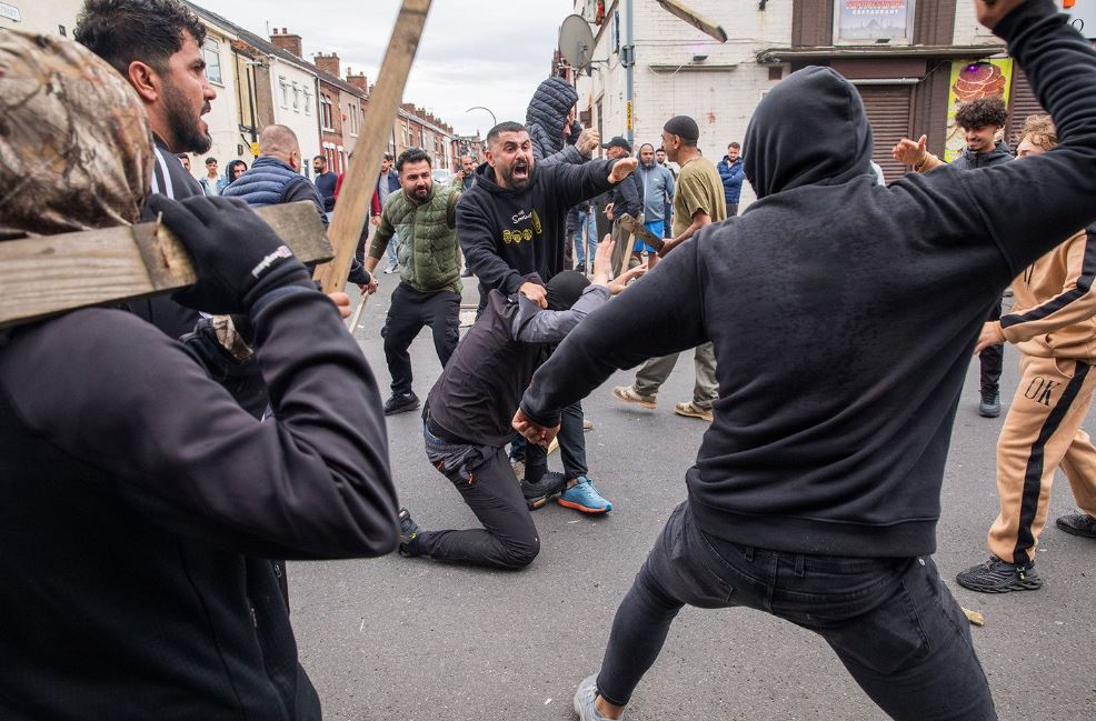 بعد مقتل ثلاث فتيات صغيرات في ساوثبورت في 29 تموز، اندلعت أعمال شغب عنيفة مناهضة للهجرة في العديد من المدن البريطانية. سكّان مدينة ميدلسبره، وهي مدينة في شمال يوركشاير في إنكلترا، يتصدّون لأحد مثيري الشغب من اليمين المتطرّف.